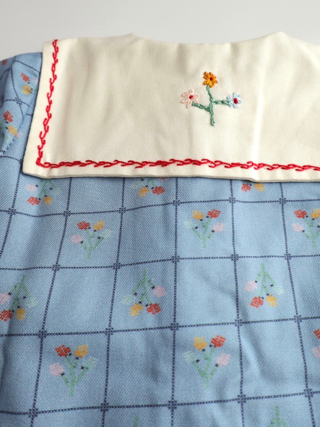 お花の刺繍がエレガントな襟元と、どんなシーンにもぴったりなデザインが魅力。