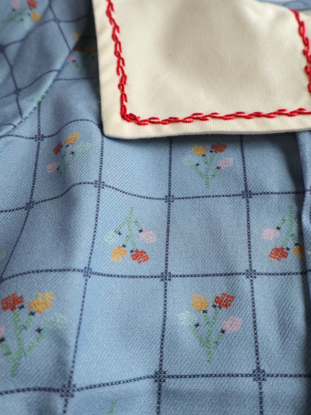 お花の刺繍がエレガントな襟元と、どんなシーンにもぴったりなデザインが魅力。