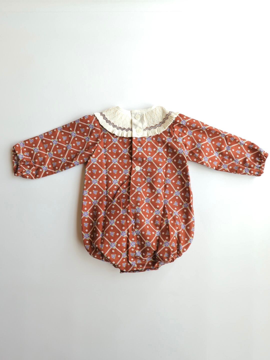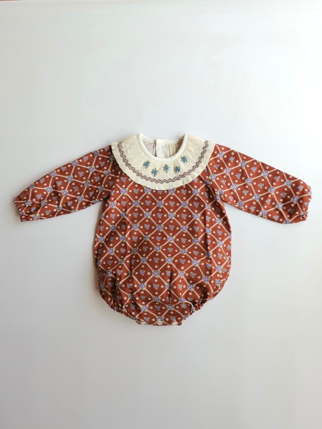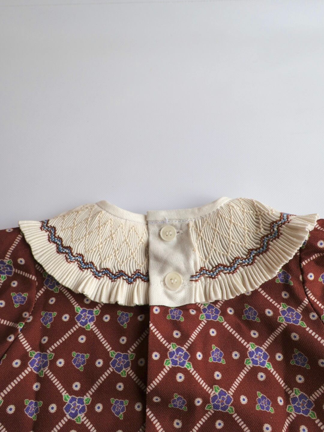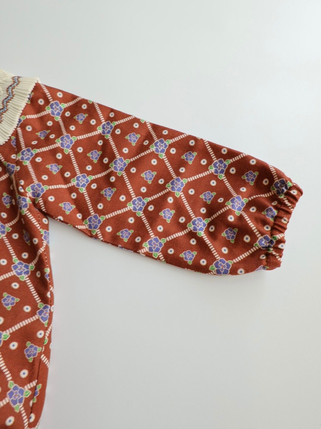 襟元のフリルと花柄の刺繡がとてもキュートです。
