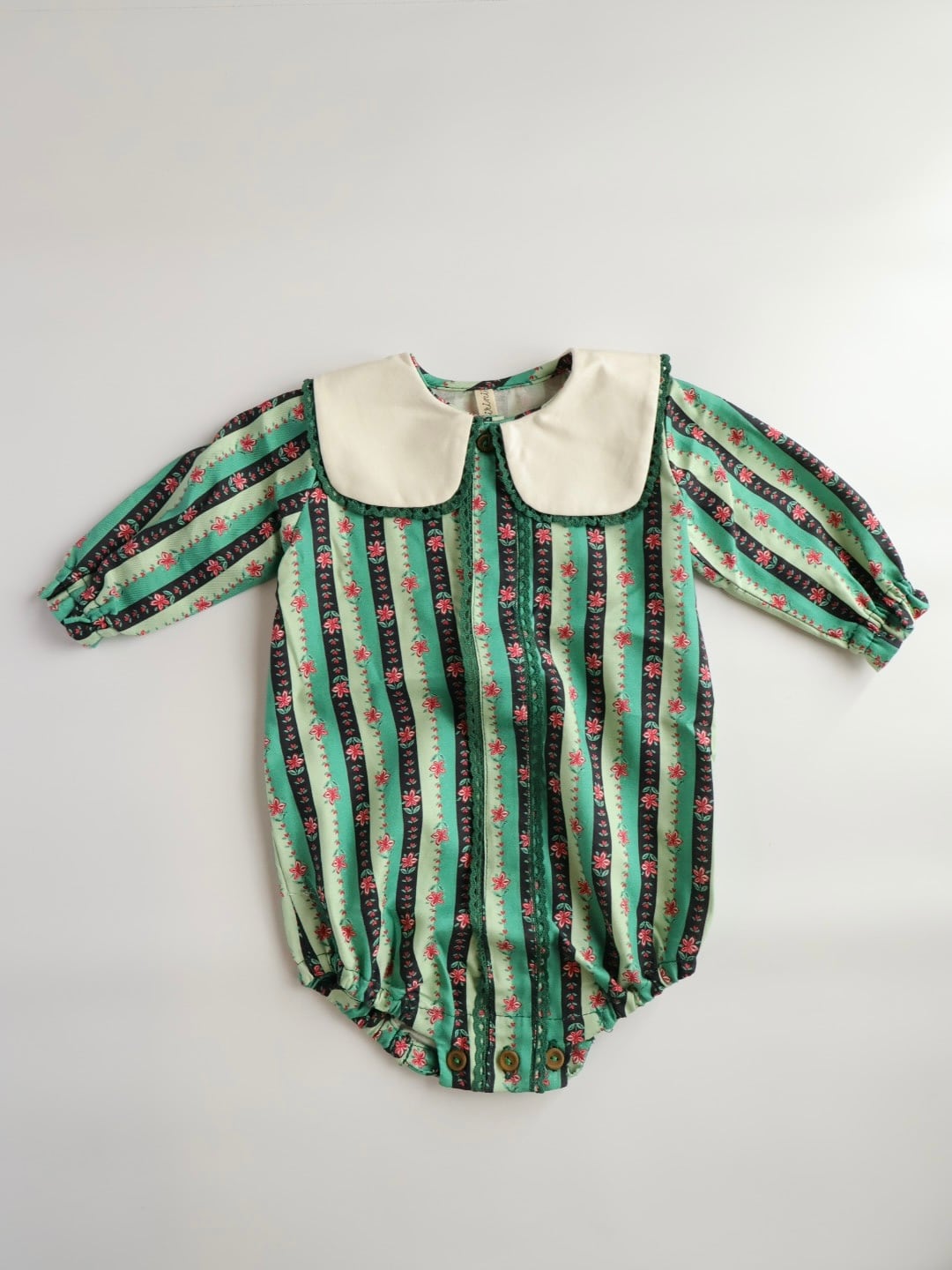 グリーンチェックに花柄のシックなロンパースです。