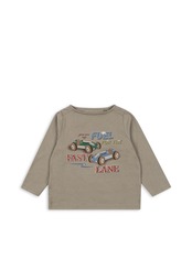 カーキ色に車柄のレトロな雰囲気のデザインです。