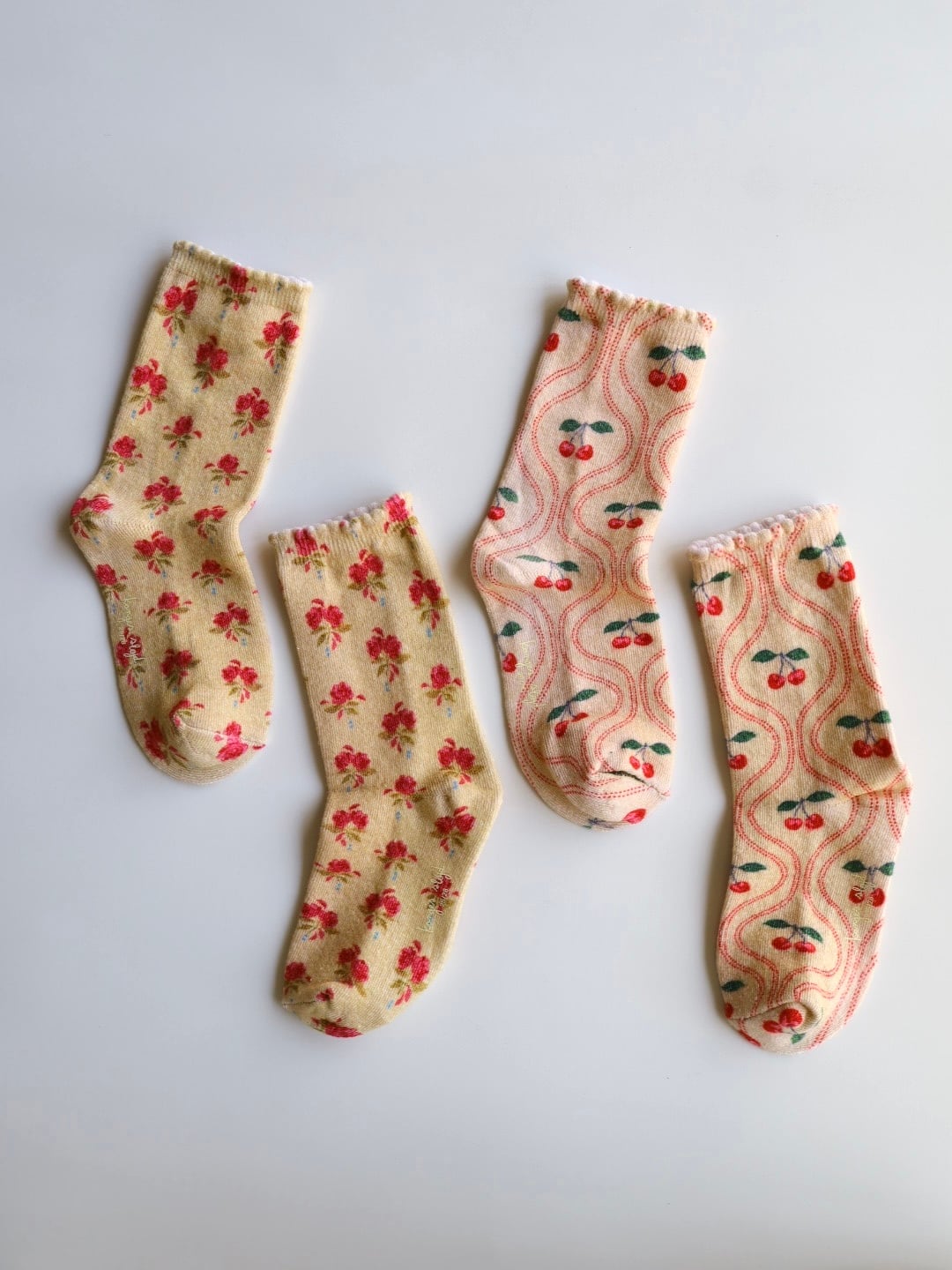 さくらんぼ柄がとてもキュート靴下2足セットです。