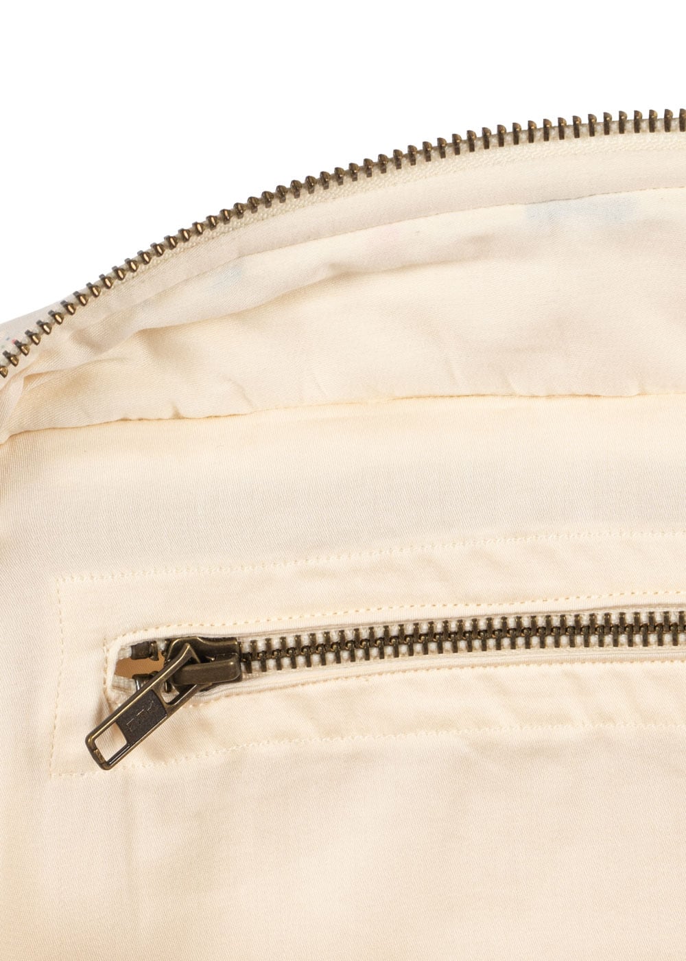 中はファスナー付きポケットと仕切りがついているのでいろいろな用途でご使用いただけますよ。